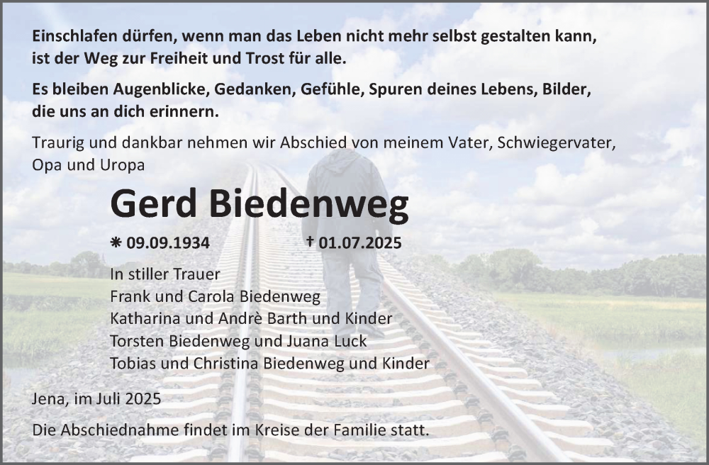 Hier finden Sie alle Traueranzeigen aus der Zeitung, die bisher für Gerd Biedenweg erschienen sind. Weitere Traueranzeigen, die in der Zeitung erscheinen, werden hier ebenfalls aufgelistet
