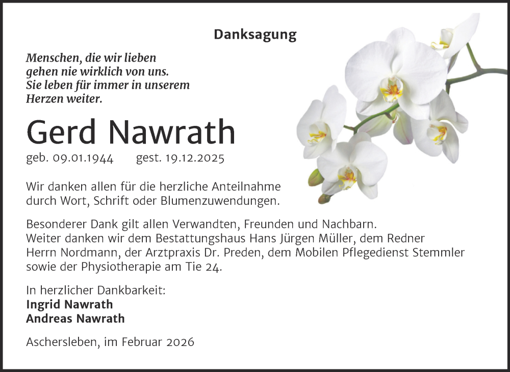 Hier finden Sie alle Traueranzeigen aus der Zeitung, die bisher für Gerd Nawrath erschienen sind. Weitere Traueranzeigen, die in der Zeitung erscheinen, werden hier ebenfalls aufgelistet