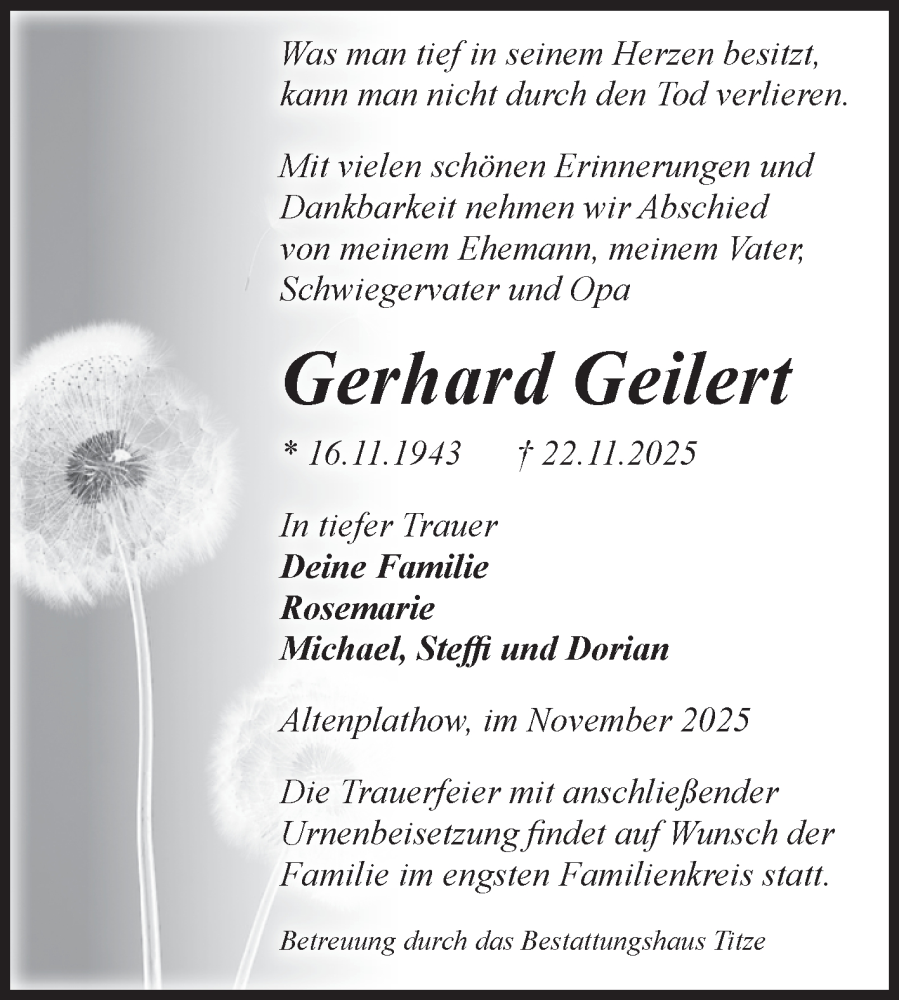 Hier finden Sie alle Traueranzeigen aus der Zeitung, die bisher für Gerhard Geilert erschienen sind. Weitere Traueranzeigen, die in der Zeitung erscheinen, werden hier ebenfalls aufgelistet