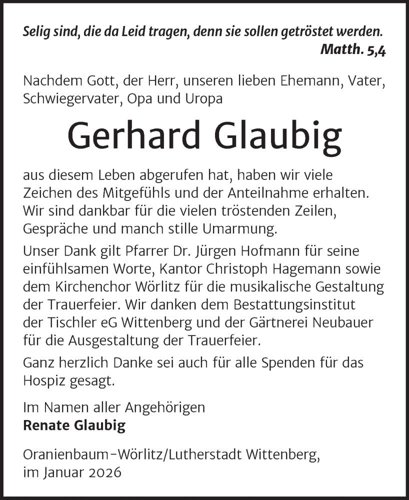 Hier finden Sie alle Traueranzeigen aus der Zeitung, die bisher für Gerhard Glaubig erschienen sind. Weitere Traueranzeigen, die in der Zeitung erscheinen, werden hier ebenfalls aufgelistet