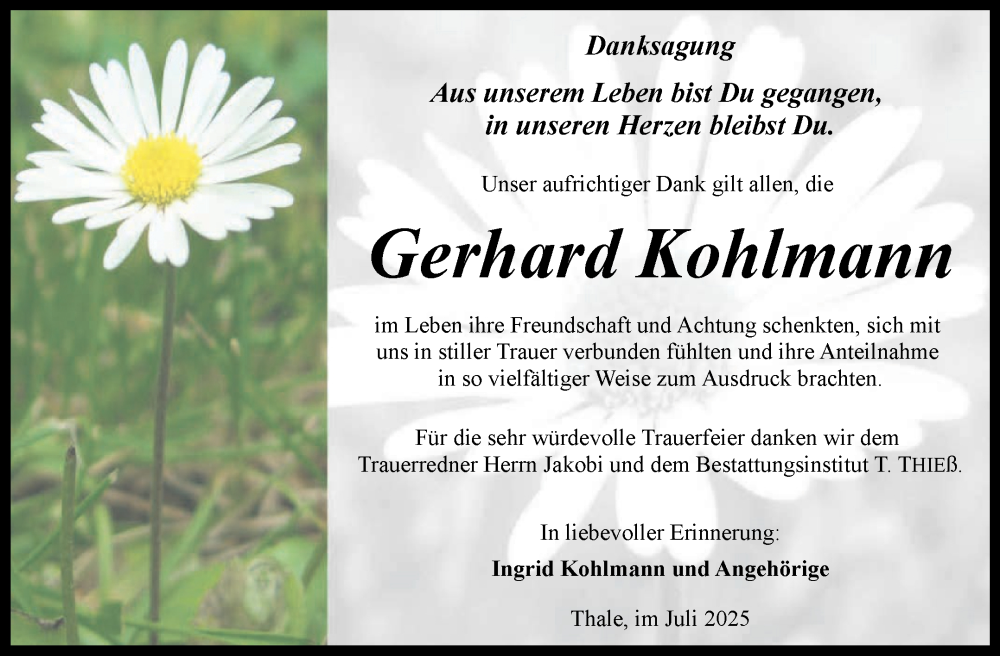 Hier finden Sie alle Traueranzeigen aus der Zeitung, die bisher für Gerhard Kohlmann erschienen sind. Weitere Traueranzeigen, die in der Zeitung erscheinen, werden hier ebenfalls aufgelistet