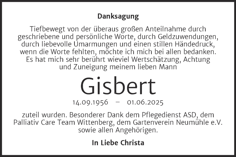 Hier finden Sie alle Traueranzeigen aus der Zeitung, die bisher für Gisbert Friebel erschienen sind. Weitere Traueranzeigen, die in der Zeitung erscheinen, werden hier ebenfalls aufgelistet