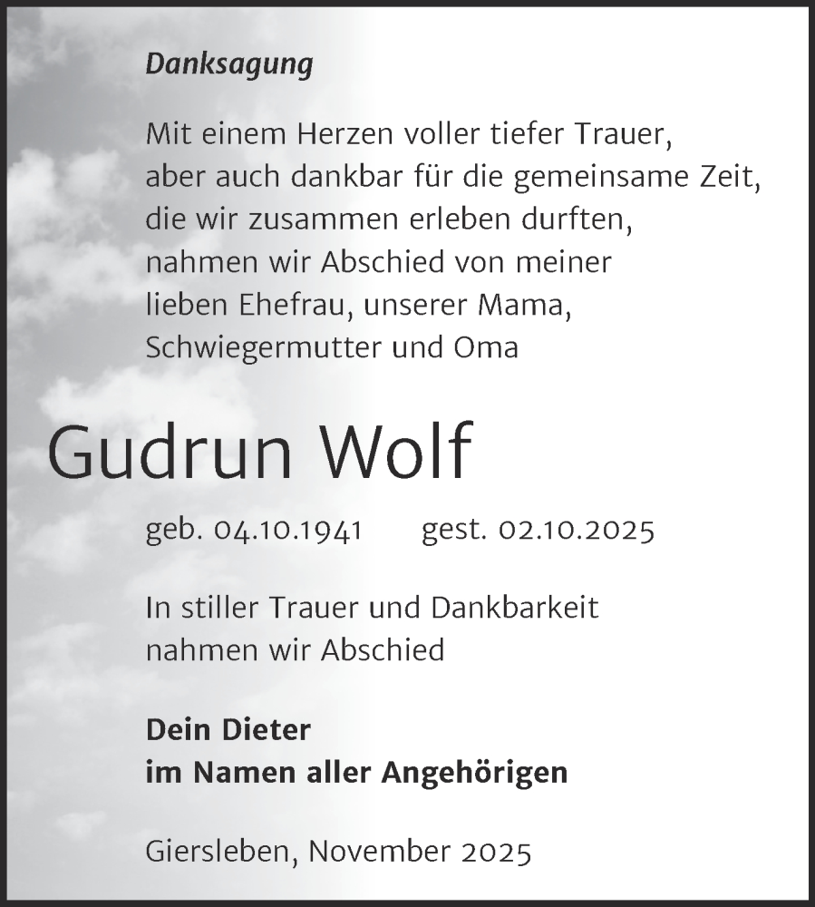 Hier finden Sie alle Traueranzeigen aus der Zeitung, die bisher für Gudrun Wolf erschienen sind. Weitere Traueranzeigen, die in der Zeitung erscheinen, werden hier ebenfalls aufgelistet