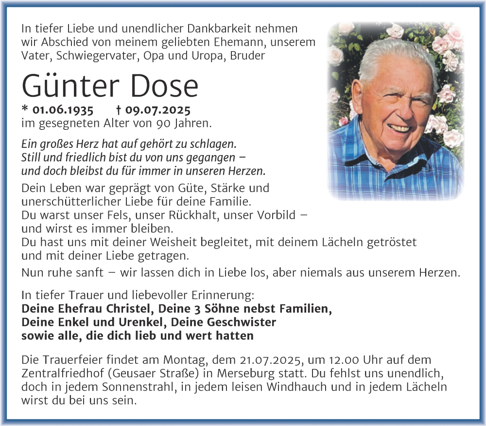 Hier finden Sie alle Traueranzeigen aus der Zeitung, die bisher für Günter Dose erschienen sind. Weitere Traueranzeigen, die in der Zeitung erscheinen, werden hier ebenfalls aufgelistet