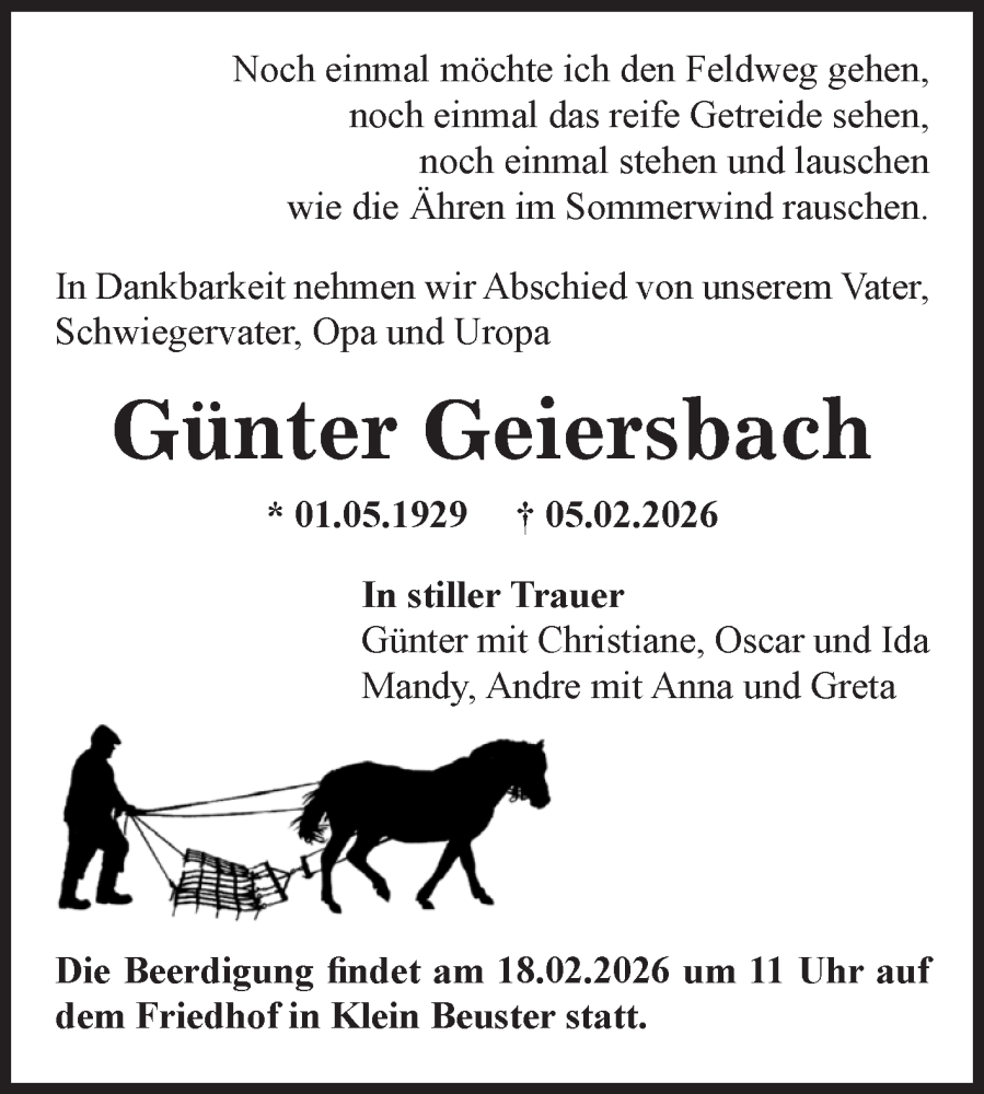 Hier finden Sie alle Traueranzeigen aus der Zeitung, die bisher für Günter Geiersbach erschienen sind. Weitere Traueranzeigen, die in der Zeitung erscheinen, werden hier ebenfalls aufgelistet