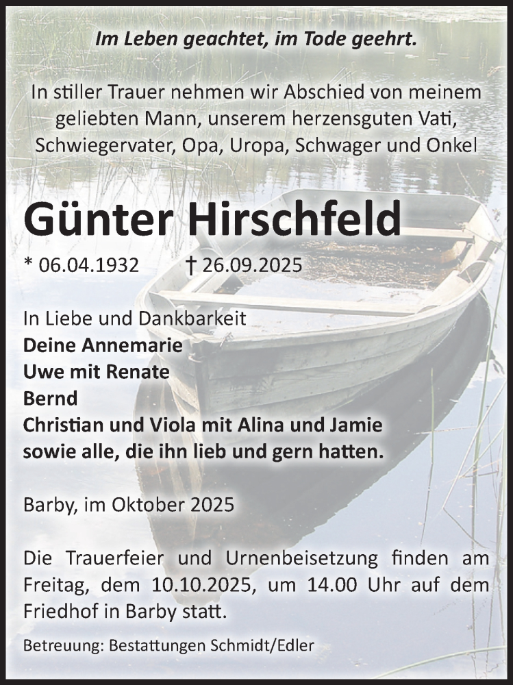 Hier finden Sie alle Traueranzeigen aus der Zeitung, die bisher für Günter Hirschfeld erschienen sind. Weitere Traueranzeigen, die in der Zeitung erscheinen, werden hier ebenfalls aufgelistet