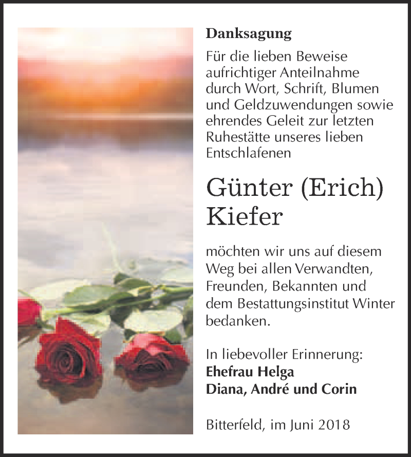 Hier finden Sie alle Traueranzeigen aus der Zeitung, die bisher für Günter Kiefer erschienen sind. Weitere Traueranzeigen, die in der Zeitung erscheinen, werden hier ebenfalls aufgelistet