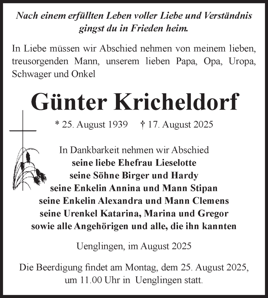 Hier finden Sie alle Traueranzeigen aus der Zeitung, die bisher für Günter Kricheldorf erschienen sind. Weitere Traueranzeigen, die in der Zeitung erscheinen, werden hier ebenfalls aufgelistet