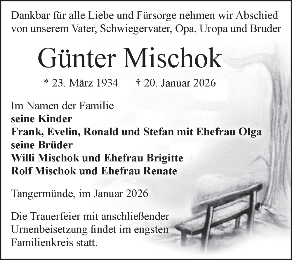 Hier finden Sie alle Traueranzeigen aus der Zeitung, die bisher für Günter Mischok erschienen sind. Weitere Traueranzeigen, die in der Zeitung erscheinen, werden hier ebenfalls aufgelistet