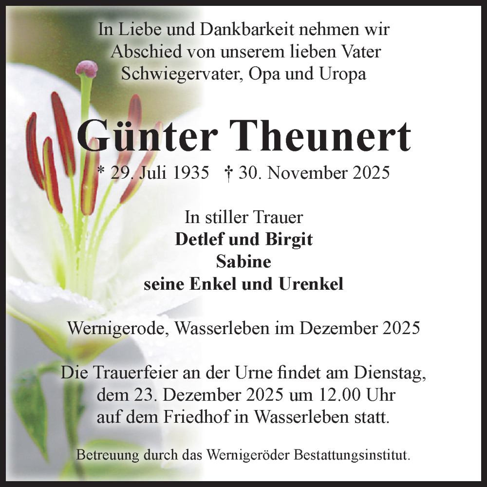 Hier finden Sie alle Traueranzeigen aus der Zeitung, die bisher für Günter Theunert erschienen sind. Weitere Traueranzeigen, die in der Zeitung erscheinen, werden hier ebenfalls aufgelistet