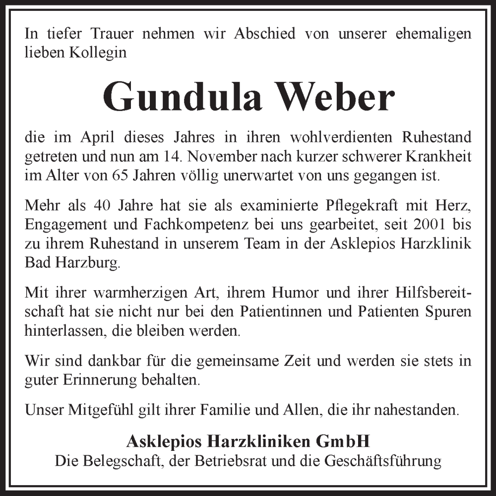 Hier finden Sie alle Traueranzeigen aus der Zeitung, die bisher für Gundula Weber erschienen sind. Weitere Traueranzeigen, die in der Zeitung erscheinen, werden hier ebenfalls aufgelistet