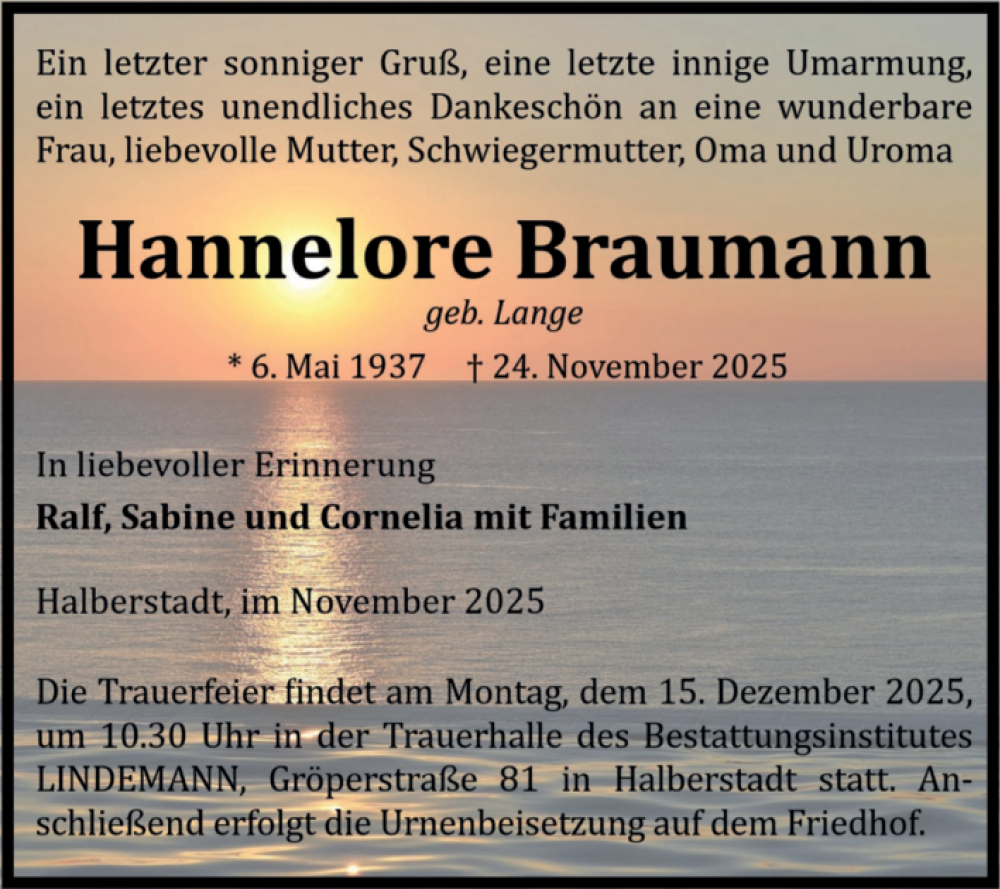 Hier finden Sie alle Traueranzeigen aus der Zeitung, die bisher für Hannelore Braumann erschienen sind. Weitere Traueranzeigen, die in der Zeitung erscheinen, werden hier ebenfalls aufgelistet