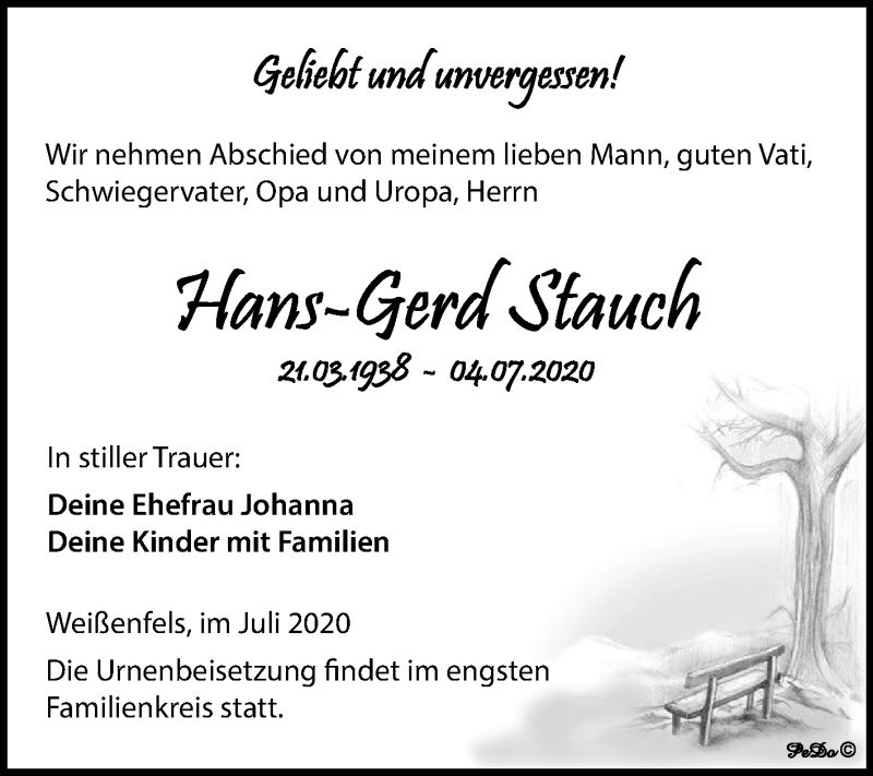 Hier finden Sie alle Traueranzeigen aus der Zeitung, die bisher für Hans-Gerd Stauch erschienen sind. Weitere Traueranzeigen, die in der Zeitung erscheinen, werden hier ebenfalls aufgelistet