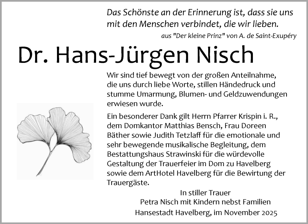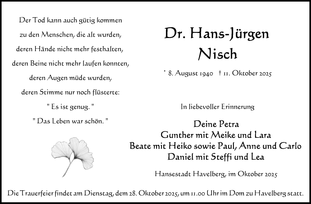 Hier finden Sie alle Traueranzeigen aus der Zeitung, die bisher für Hans-Jürgen Nisch erschienen sind. Weitere Traueranzeigen, die in der Zeitung erscheinen, werden hier ebenfalls aufgelistet