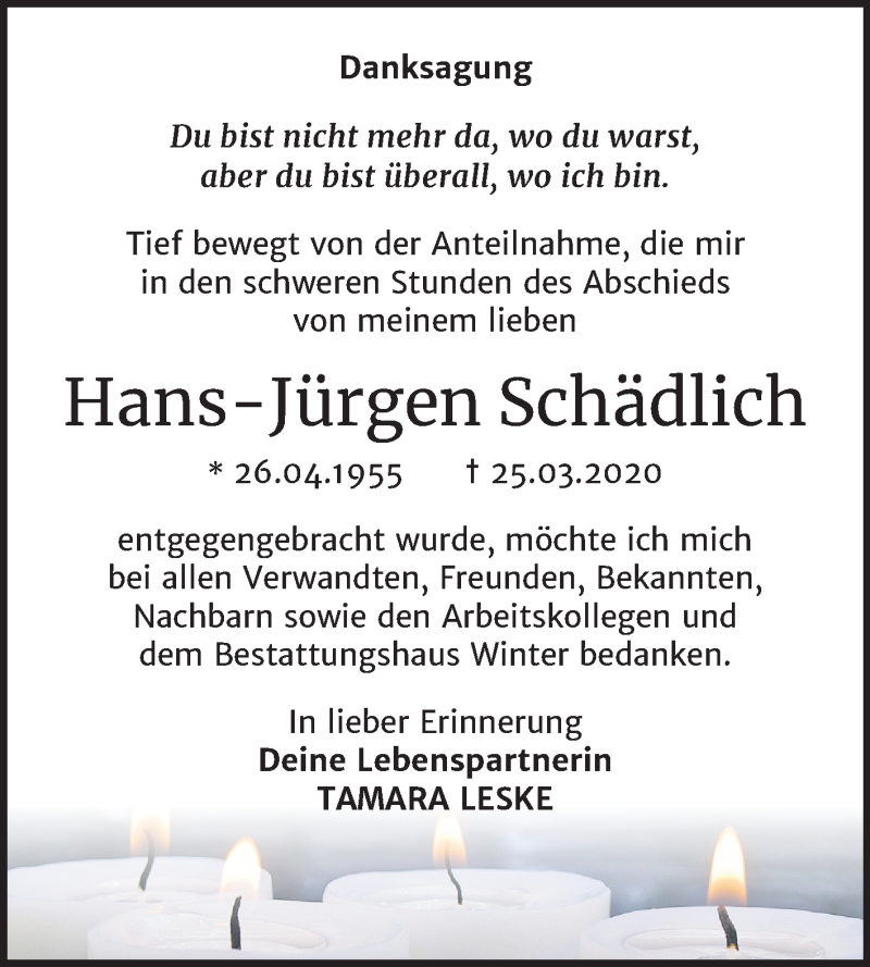 Hier finden Sie alle Traueranzeigen aus der Zeitung, die bisher für Hans-Jürgen Schädlich erschienen sind. Weitere Traueranzeigen, die in der Zeitung erscheinen, werden hier ebenfalls aufgelistet