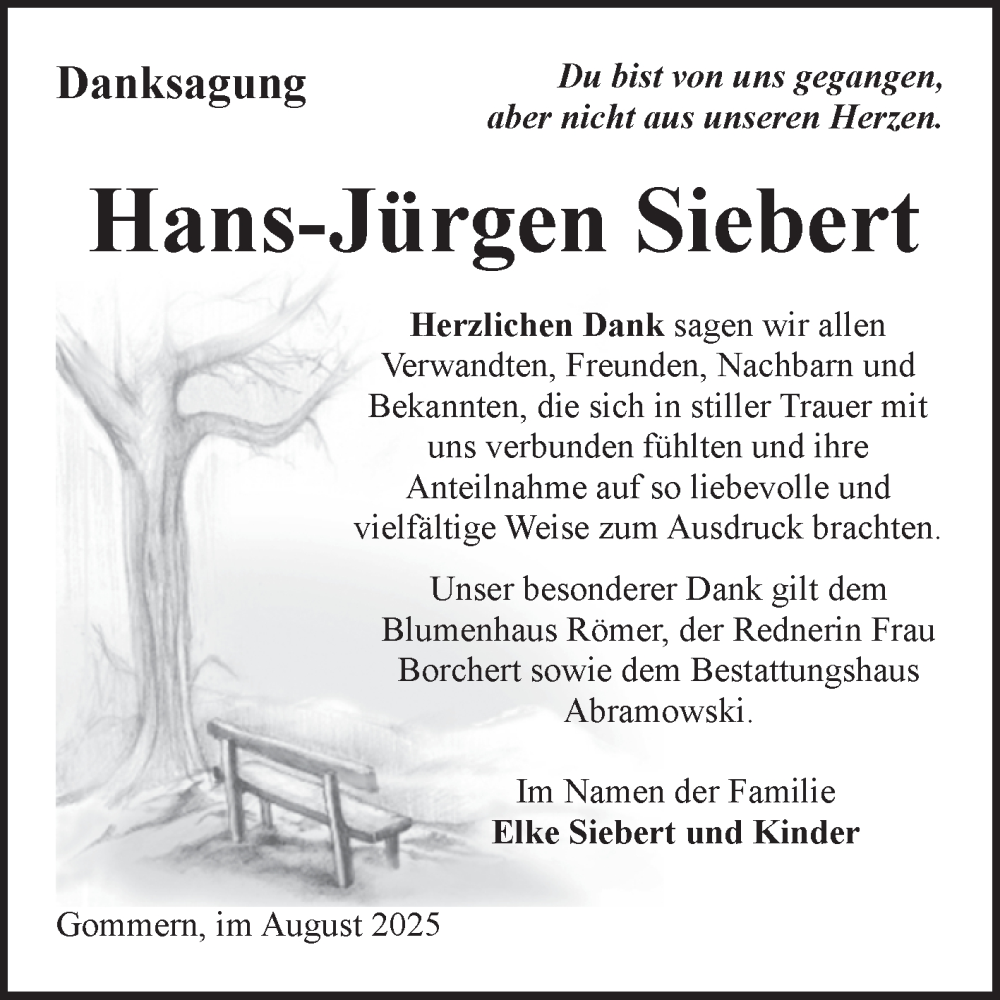 Hier finden Sie alle Traueranzeigen aus der Zeitung, die bisher für Hans-Jürgen Siebert erschienen sind. Weitere Traueranzeigen, die in der Zeitung erscheinen, werden hier ebenfalls aufgelistet