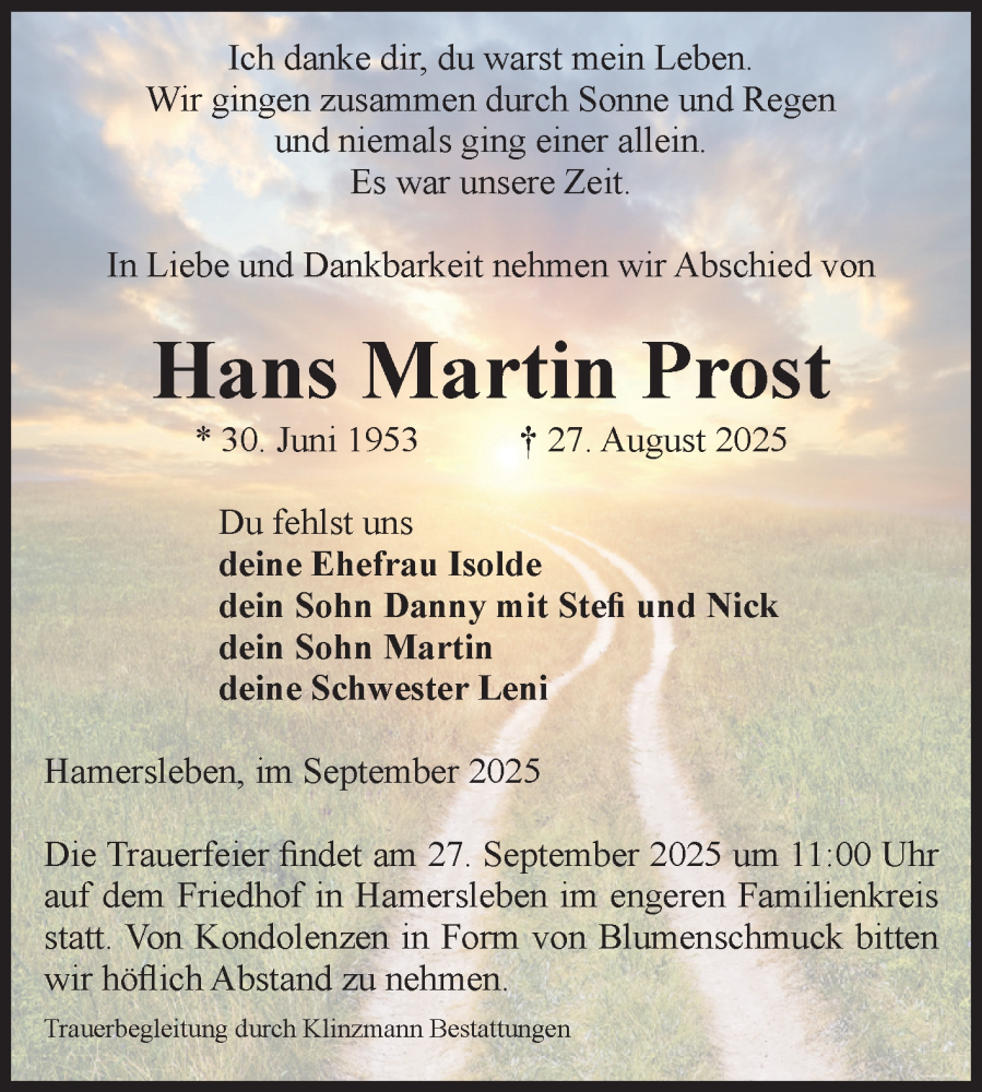 Hier finden Sie alle Traueranzeigen aus der Zeitung, die bisher für Hans Martin Prost erschienen sind. Weitere Traueranzeigen, die in der Zeitung erscheinen, werden hier ebenfalls aufgelistet