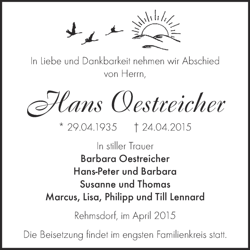 Hier finden Sie alle Traueranzeigen aus der Zeitung, die bisher für Hans Oestreicher erschienen sind. Weitere Traueranzeigen, die in der Zeitung erscheinen, werden hier ebenfalls aufgelistet