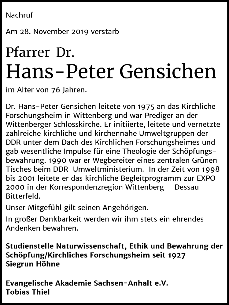 Hier finden Sie alle Traueranzeigen aus der Zeitung, die bisher für Hans-Peter Gensichen erschienen sind. Weitere Traueranzeigen, die in der Zeitung erscheinen, werden hier ebenfalls aufgelistet