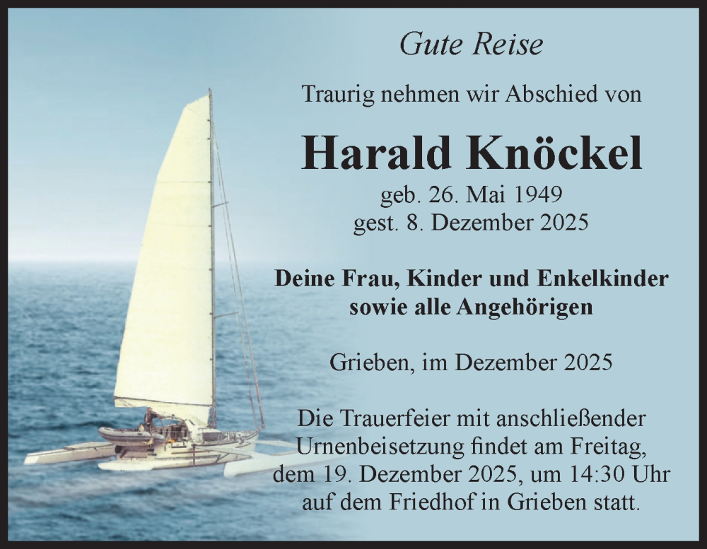 Hier finden Sie alle Traueranzeigen aus der Zeitung, die bisher für Harald Knöckel erschienen sind. Weitere Traueranzeigen, die in der Zeitung erscheinen, werden hier ebenfalls aufgelistet