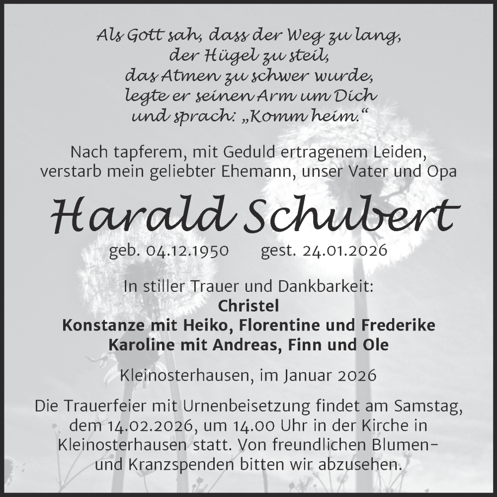 Hier finden Sie alle Traueranzeigen aus der Zeitung, die bisher für Harald Schubert erschienen sind. Weitere Traueranzeigen, die in der Zeitung erscheinen, werden hier ebenfalls aufgelistet