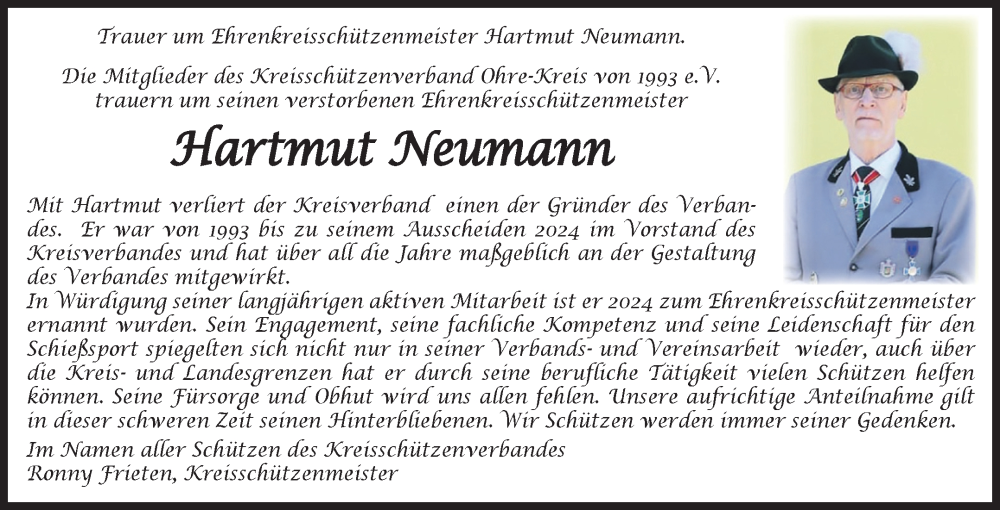 Hier finden Sie alle Traueranzeigen aus der Zeitung, die bisher für Hartmut Neumann erschienen sind. Weitere Traueranzeigen, die in der Zeitung erscheinen, werden hier ebenfalls aufgelistet