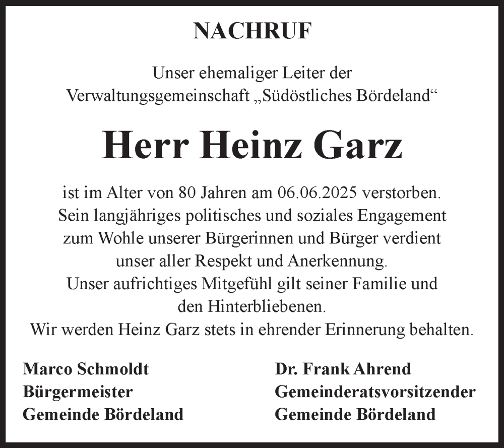 Hier finden Sie alle Traueranzeigen aus der Zeitung, die bisher für Heinz Garz erschienen sind. Weitere Traueranzeigen, die in der Zeitung erscheinen, werden hier ebenfalls aufgelistet