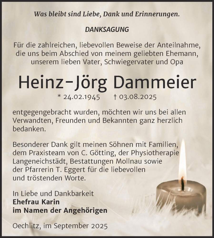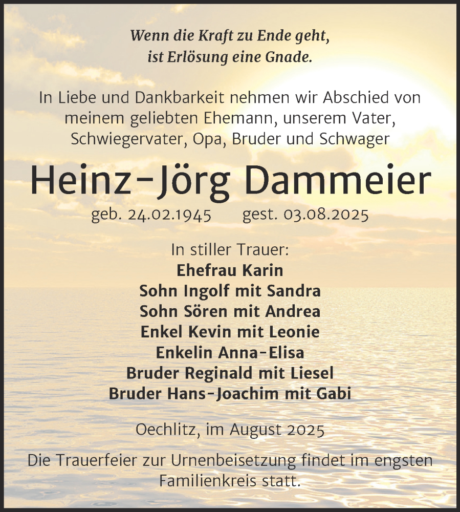 Hier finden Sie alle Traueranzeigen aus der Zeitung, die bisher für Heinz-Jörg Dammeier erschienen sind. Weitere Traueranzeigen, die in der Zeitung erscheinen, werden hier ebenfalls aufgelistet