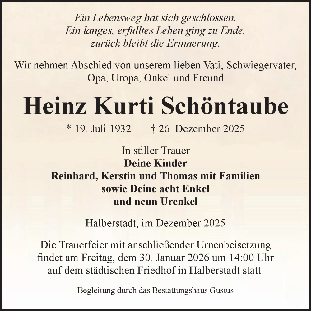 Hier finden Sie alle Traueranzeigen aus der Zeitung, die bisher für Heinz Kurti Schöntaube erschienen sind. Weitere Traueranzeigen, die in der Zeitung erscheinen, werden hier ebenfalls aufgelistet