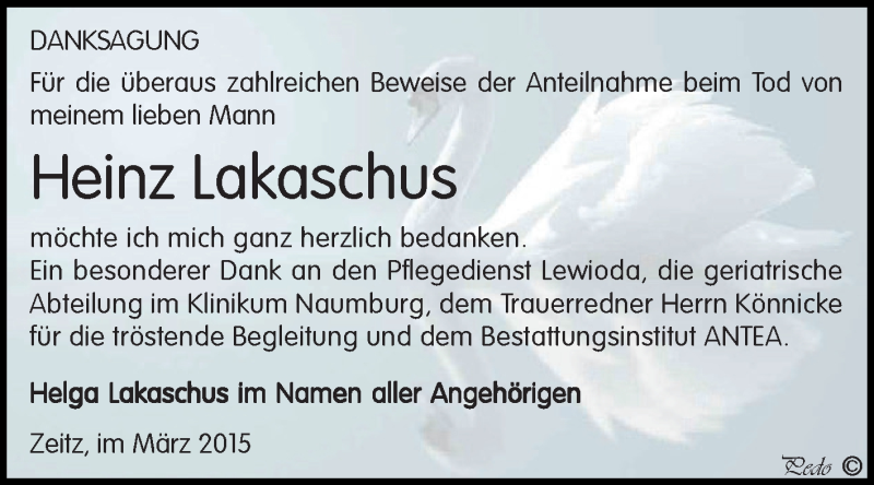 Hier finden Sie alle Traueranzeigen aus der Zeitung, die bisher für Heinz Lakaschus erschienen sind. Weitere Traueranzeigen, die in der Zeitung erscheinen, werden hier ebenfalls aufgelistet