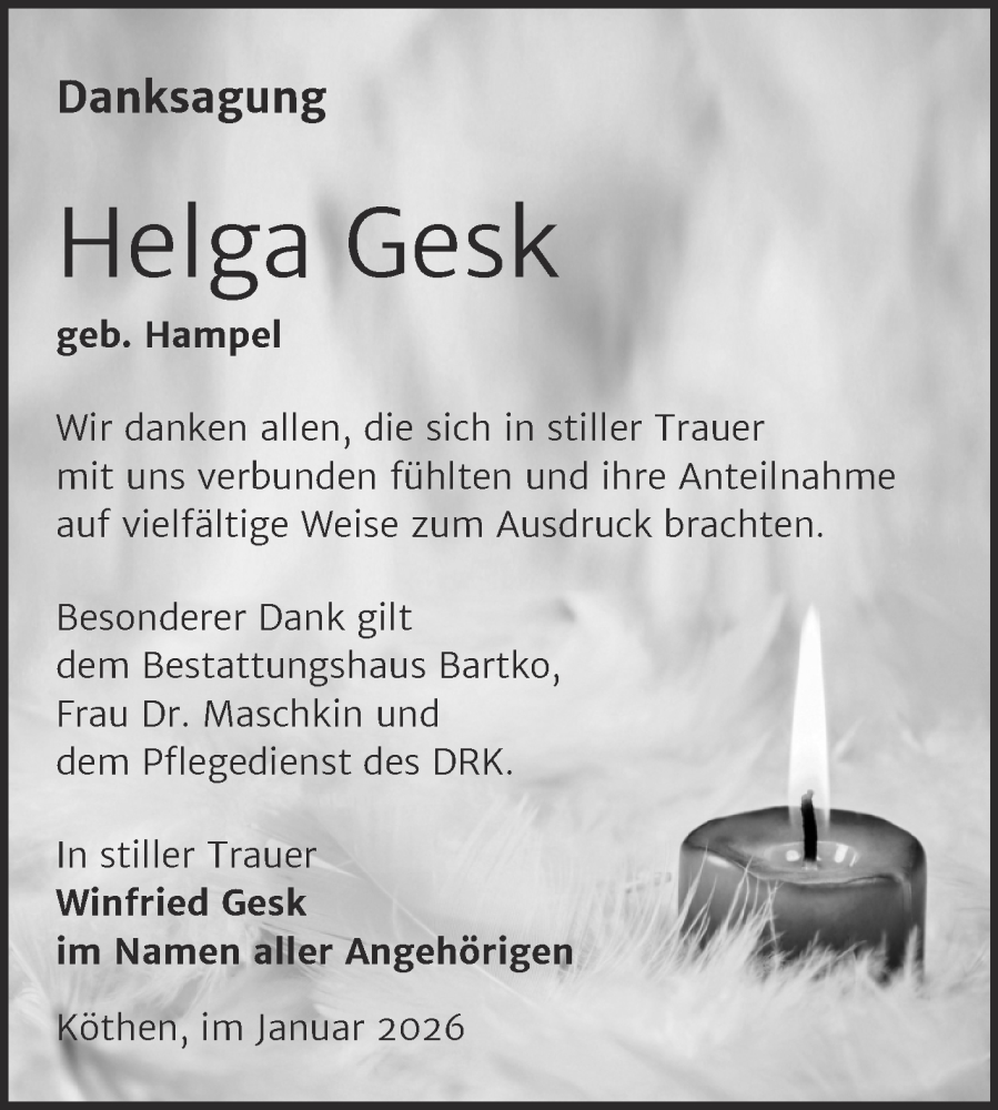 Hier finden Sie alle Traueranzeigen aus der Zeitung, die bisher für Helga Gesk erschienen sind. Weitere Traueranzeigen, die in der Zeitung erscheinen, werden hier ebenfalls aufgelistet