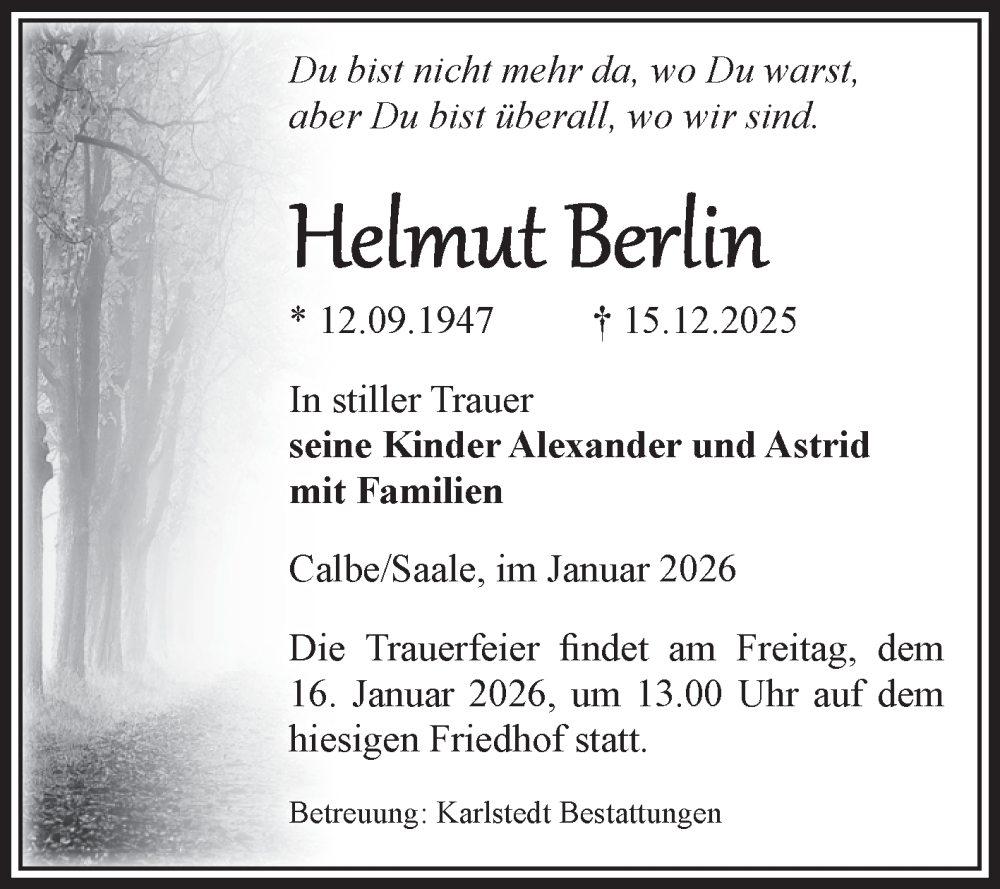 Hier finden Sie alle Traueranzeigen aus der Zeitung, die bisher für Helmut Berlin erschienen sind. Weitere Traueranzeigen, die in der Zeitung erscheinen, werden hier ebenfalls aufgelistet
