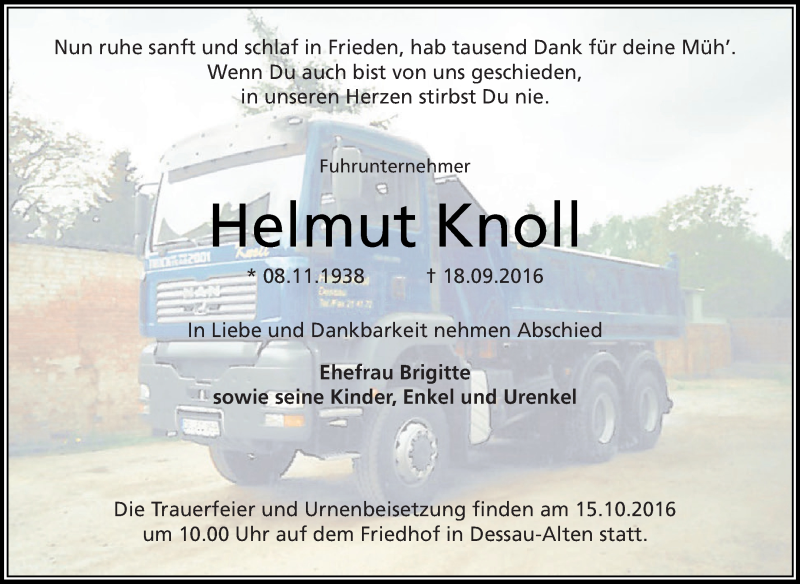 Hier finden Sie alle Traueranzeigen aus der Zeitung, die bisher für Helmut Knoll erschienen sind. Weitere Traueranzeigen, die in der Zeitung erscheinen, werden hier ebenfalls aufgelistet
