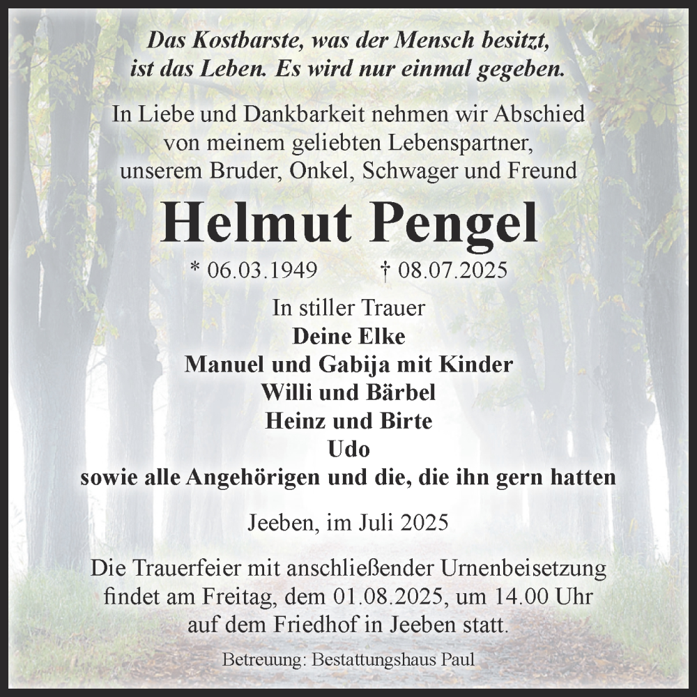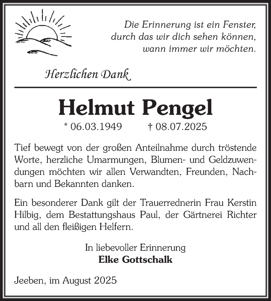 Hier finden Sie alle Traueranzeigen aus der Zeitung, die bisher für Helmut Pengel erschienen sind. Weitere Traueranzeigen, die in der Zeitung erscheinen, werden hier ebenfalls aufgelistet