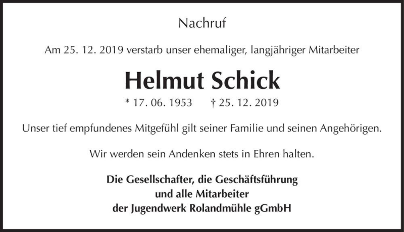 Hier finden Sie alle Traueranzeigen aus der Zeitung, die bisher für Helmut Schick erschienen sind. Weitere Traueranzeigen, die in der Zeitung erscheinen, werden hier ebenfalls aufgelistet