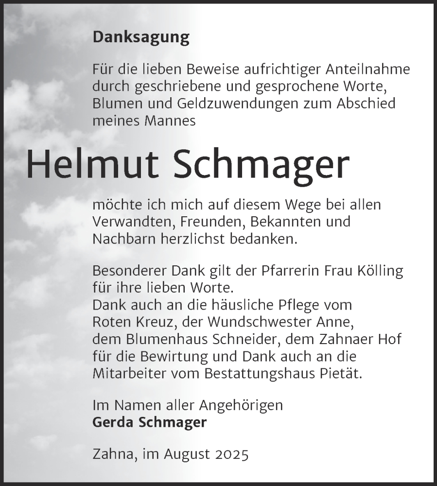Hier finden Sie alle Traueranzeigen aus der Zeitung, die bisher für Helmut Schmager erschienen sind. Weitere Traueranzeigen, die in der Zeitung erscheinen, werden hier ebenfalls aufgelistet