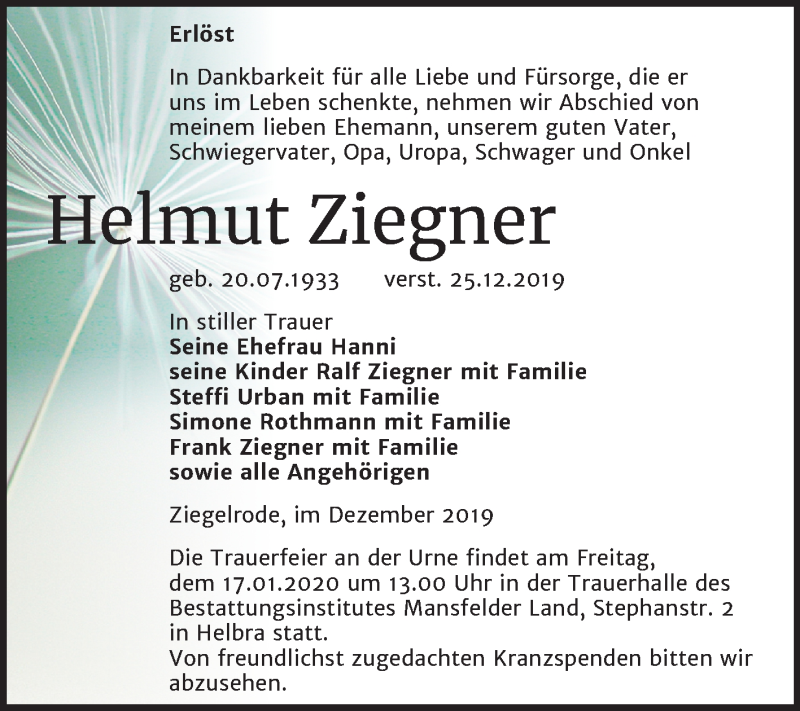 Hier finden Sie alle Traueranzeigen aus der Zeitung, die bisher für Helmut Ziegner erschienen sind. Weitere Traueranzeigen, die in der Zeitung erscheinen, werden hier ebenfalls aufgelistet