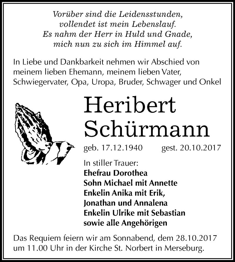 Hier finden Sie alle Traueranzeigen aus der Zeitung, die bisher für Heribert Schürmann erschienen sind. Weitere Traueranzeigen, die in der Zeitung erscheinen, werden hier ebenfalls aufgelistet