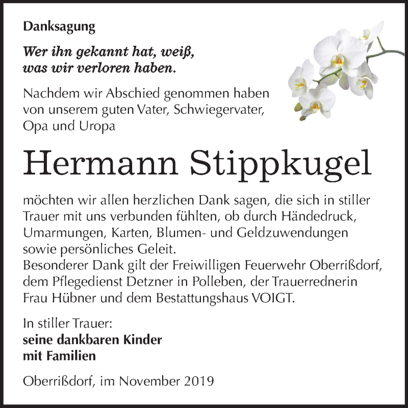 Hier finden Sie alle Traueranzeigen aus der Zeitung, die bisher für Hermann Stippkugel erschienen sind. Weitere Traueranzeigen, die in der Zeitung erscheinen, werden hier ebenfalls aufgelistet
