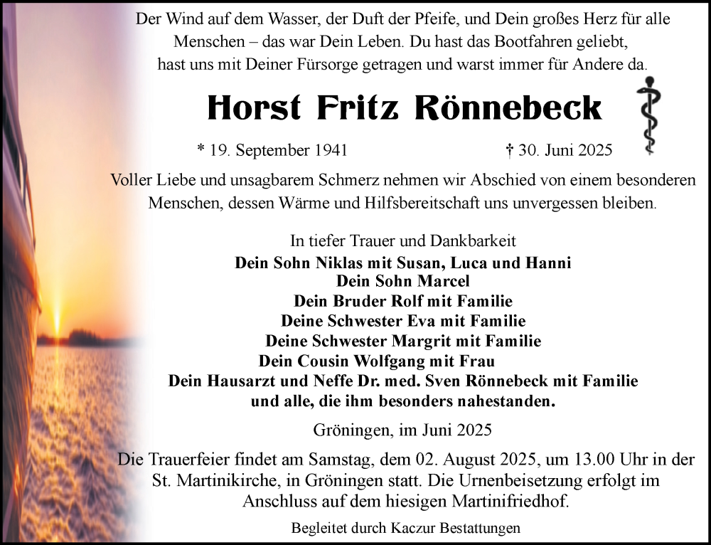 Hier finden Sie alle Traueranzeigen aus der Zeitung, die bisher für Horst Fritz Rönnebeck erschienen sind. Weitere Traueranzeigen, die in der Zeitung erscheinen, werden hier ebenfalls aufgelistet