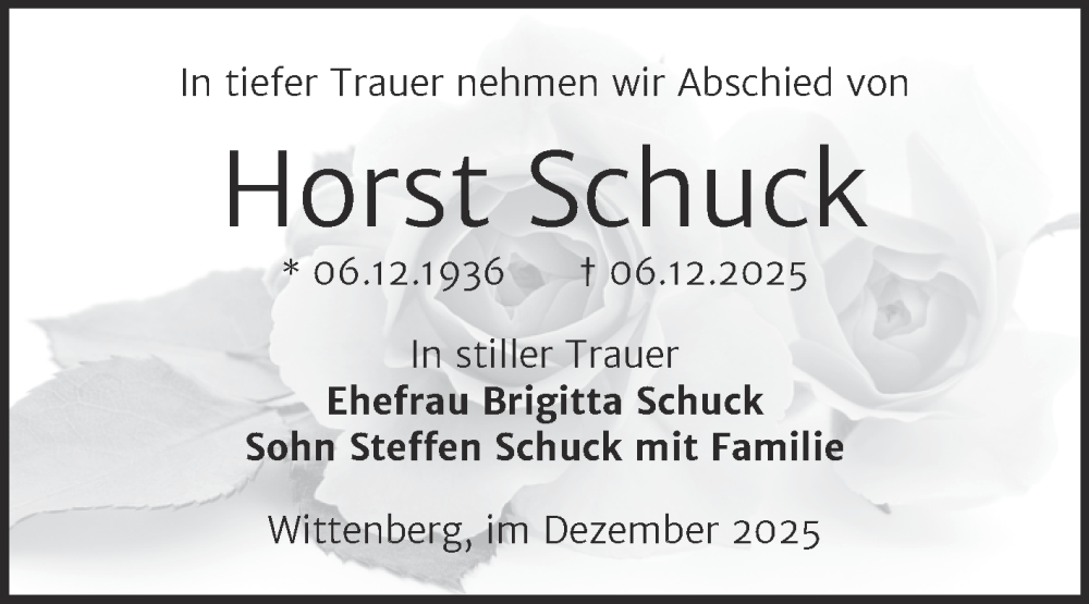 Hier finden Sie alle Traueranzeigen aus der Zeitung, die bisher für Horst Schuck erschienen sind. Weitere Traueranzeigen, die in der Zeitung erscheinen, werden hier ebenfalls aufgelistet