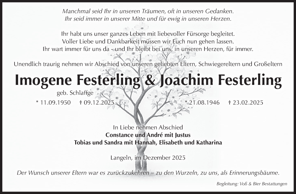 Hier finden Sie alle Traueranzeigen aus der Zeitung, die bisher für Imogene Festerling erschienen sind. Weitere Traueranzeigen, die in der Zeitung erscheinen, werden hier ebenfalls aufgelistet