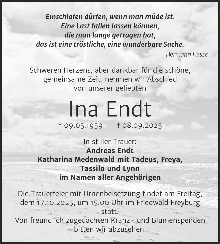 Hier finden Sie alle Traueranzeigen aus der Zeitung, die bisher für Ina Endt erschienen sind. Weitere Traueranzeigen, die in der Zeitung erscheinen, werden hier ebenfalls aufgelistet