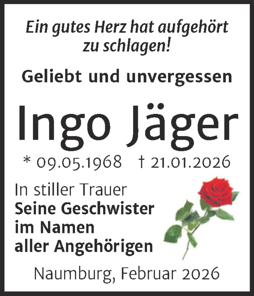 Hier finden Sie alle Traueranzeigen aus der Zeitung, die bisher für Ingo Jäger erschienen sind. Weitere Traueranzeigen, die in der Zeitung erscheinen, werden hier ebenfalls aufgelistet