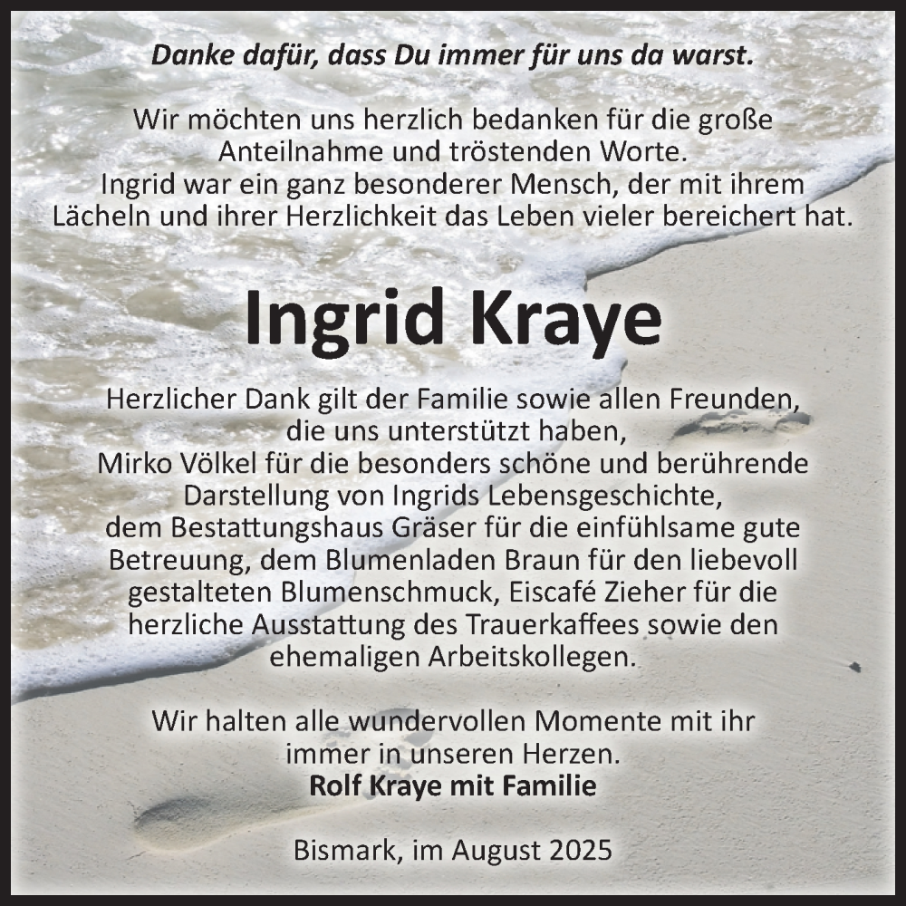 Hier finden Sie alle Traueranzeigen aus der Zeitung, die bisher für Ingrid Kraye erschienen sind. Weitere Traueranzeigen, die in der Zeitung erscheinen, werden hier ebenfalls aufgelistet