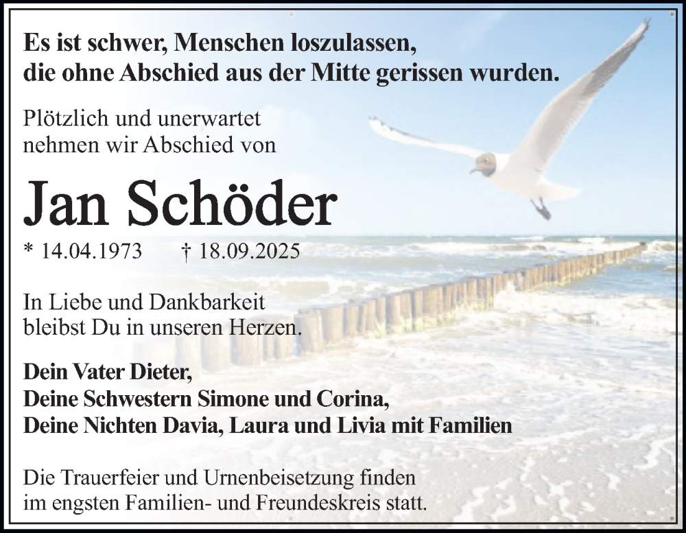 Hier finden Sie alle Traueranzeigen aus der Zeitung, die bisher für Jan Schöder erschienen sind. Weitere Traueranzeigen, die in der Zeitung erscheinen, werden hier ebenfalls aufgelistet