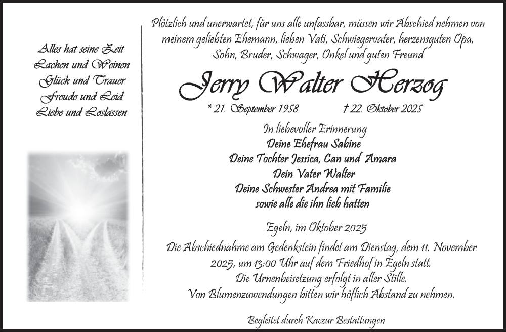 Hier finden Sie alle Traueranzeigen aus der Zeitung, die bisher für Jerry Walter erschienen sind. Weitere Traueranzeigen, die in der Zeitung erscheinen, werden hier ebenfalls aufgelistet