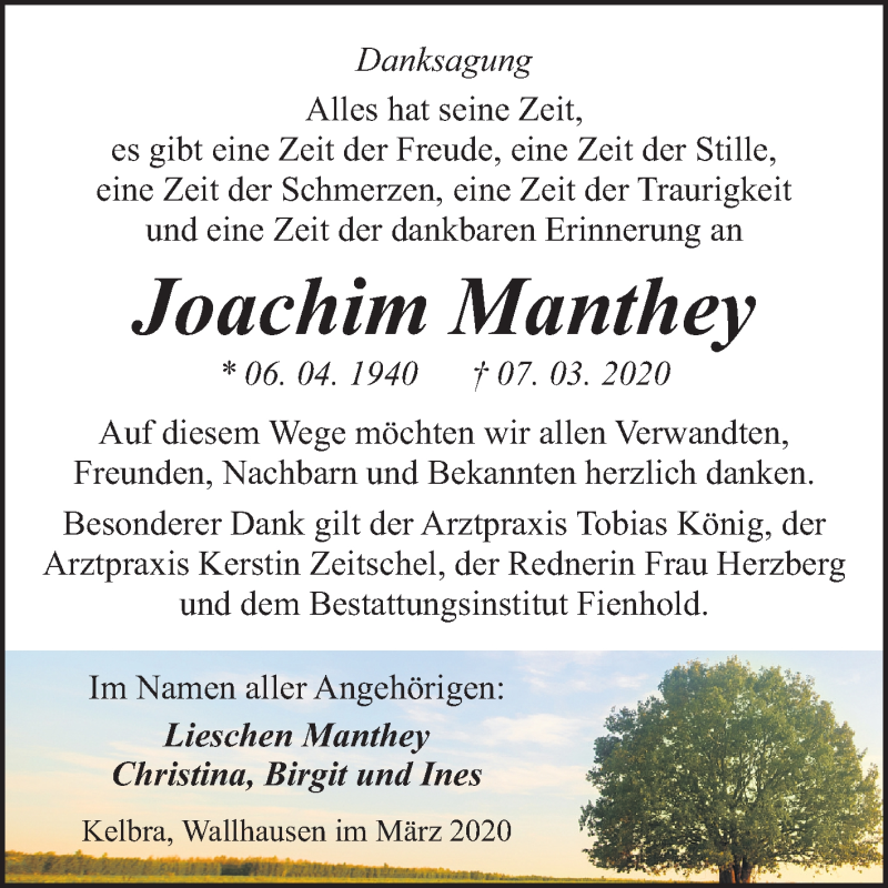 Hier finden Sie alle Traueranzeigen aus der Zeitung, die bisher für Joachim Manthey erschienen sind. Weitere Traueranzeigen, die in der Zeitung erscheinen, werden hier ebenfalls aufgelistet