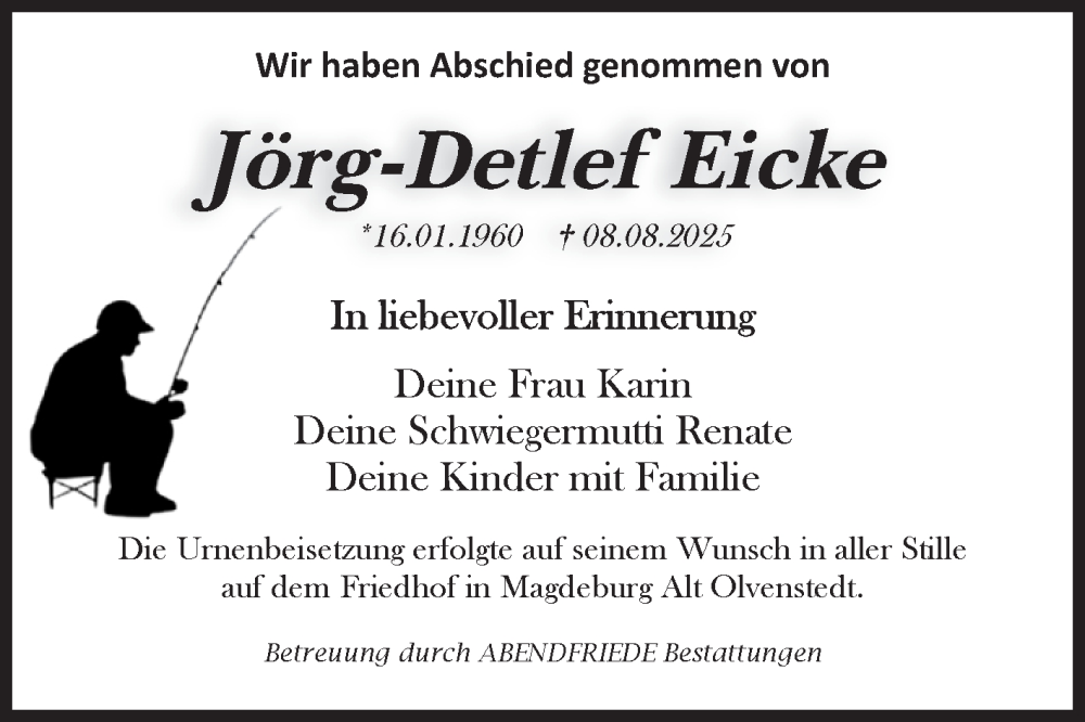 Hier finden Sie alle Traueranzeigen aus der Zeitung, die bisher für Jörg-Detlef Eicke erschienen sind. Weitere Traueranzeigen, die in der Zeitung erscheinen, werden hier ebenfalls aufgelistet