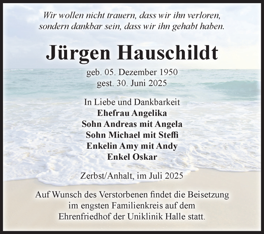Hier finden Sie alle Traueranzeigen aus der Zeitung, die bisher für Jürgen Hauschildt erschienen sind. Weitere Traueranzeigen, die in der Zeitung erscheinen, werden hier ebenfalls aufgelistet